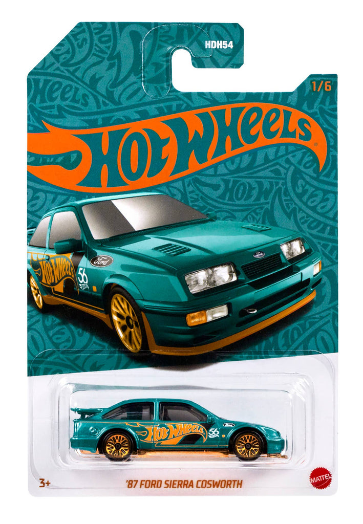 This anniversary collection of die-cast Hot Wheels cars, trucks and vans features a turquoise and copper-color theme that kids and collectors will love. Each vehicle is 1:64 scale and includes modern and vintage castings of popular automobiles. They're themed to celebrate the 56th anniversary of Hot Wheels for enhanced collectability.